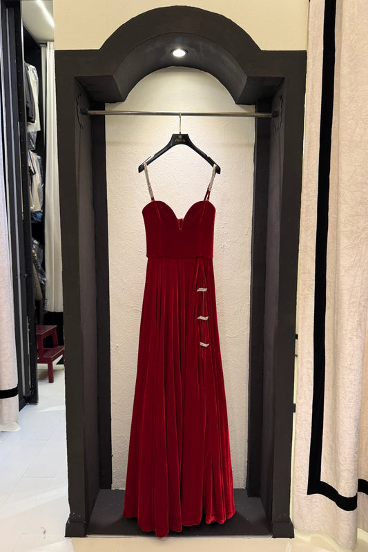 Abito lungo in velluto con scollo a cuore
