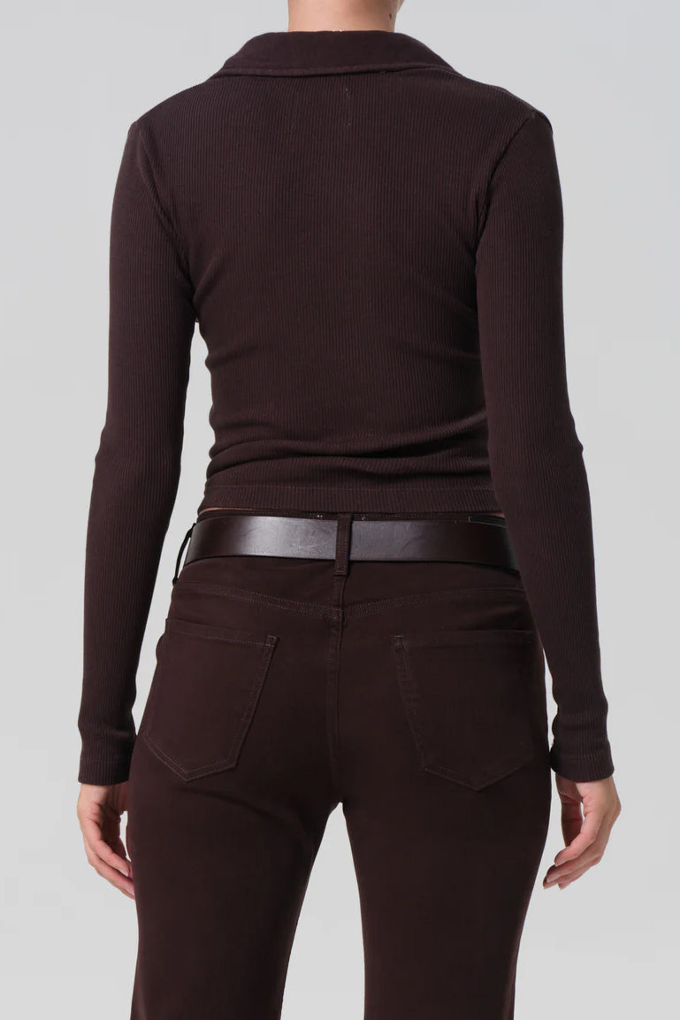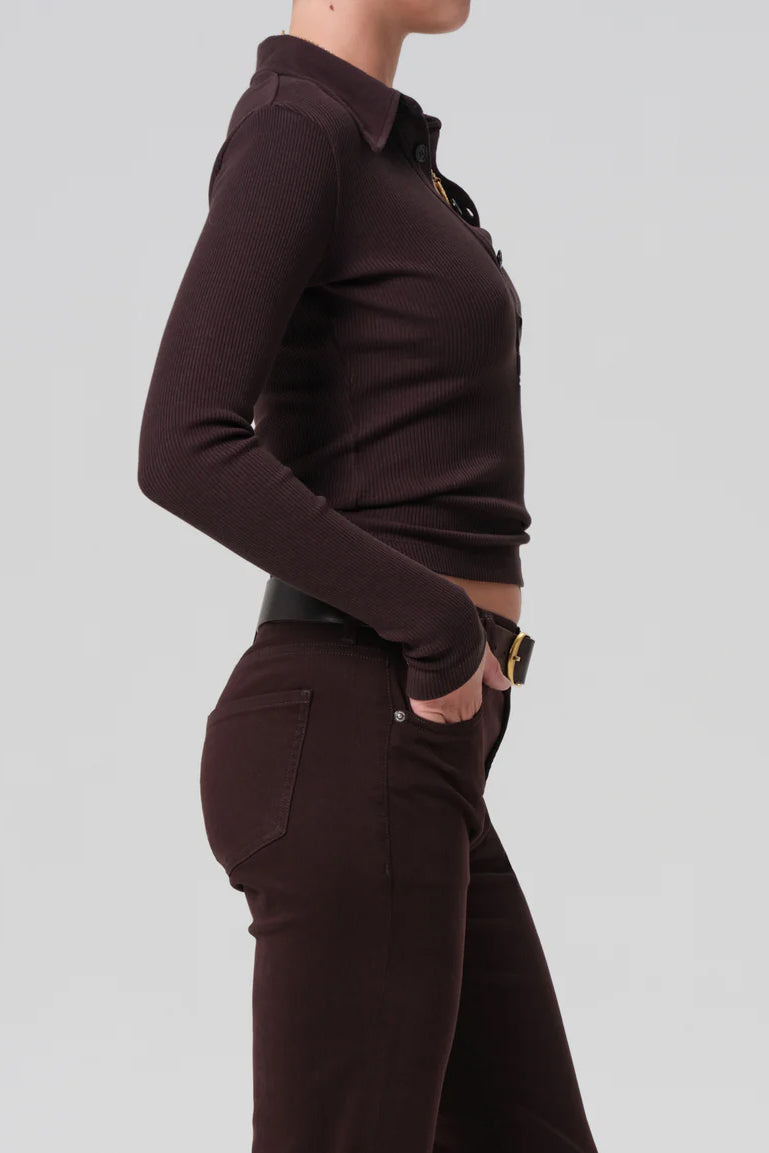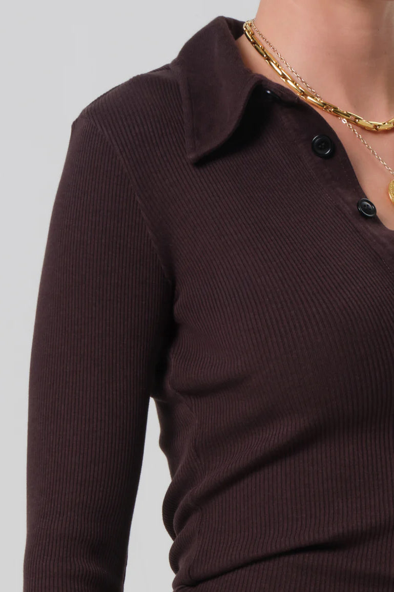 Polo a maniche lunghe realizzata in cotone a costine ultra morbido e sostenitivo. La vestibilità è regolare.