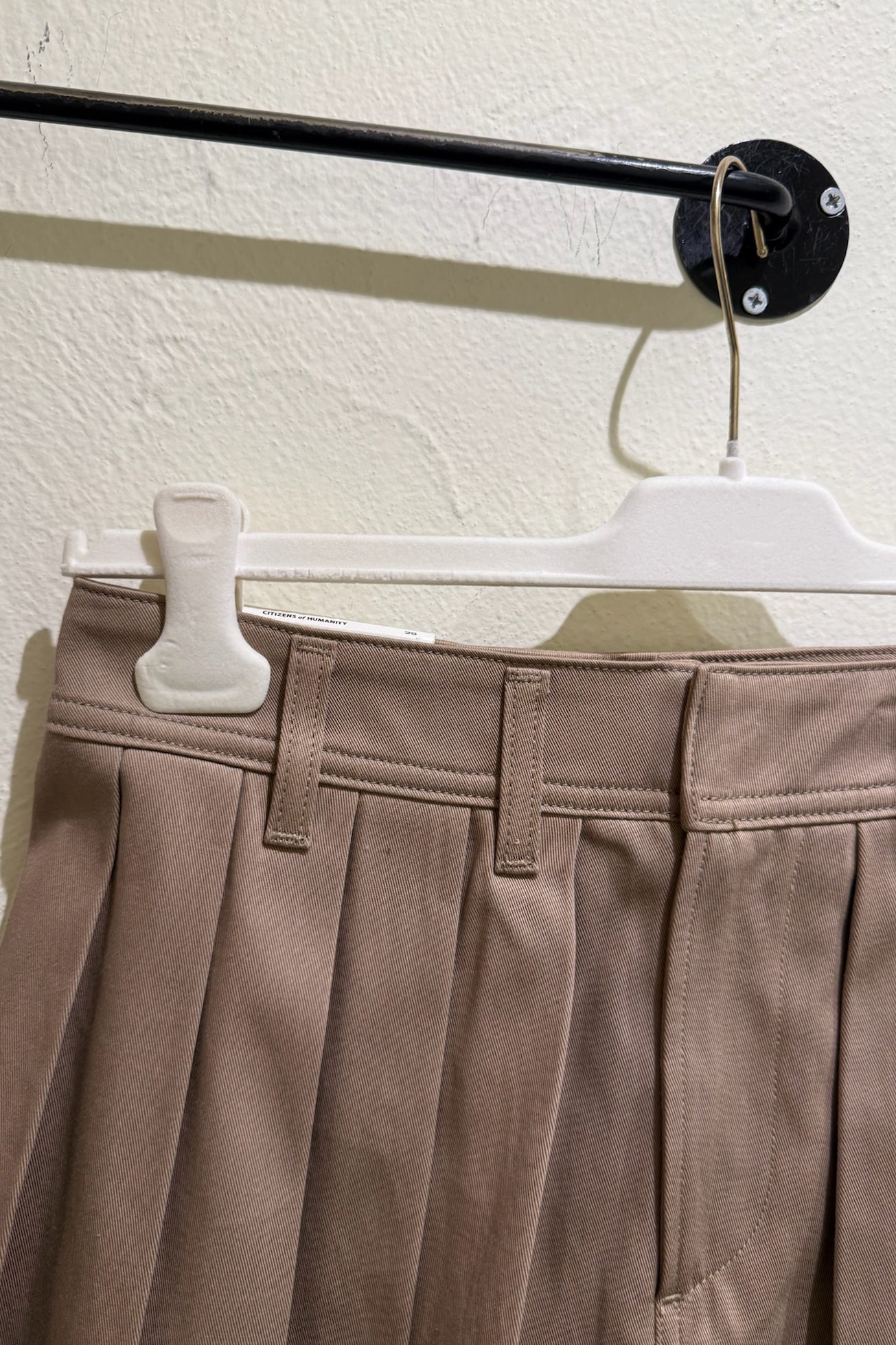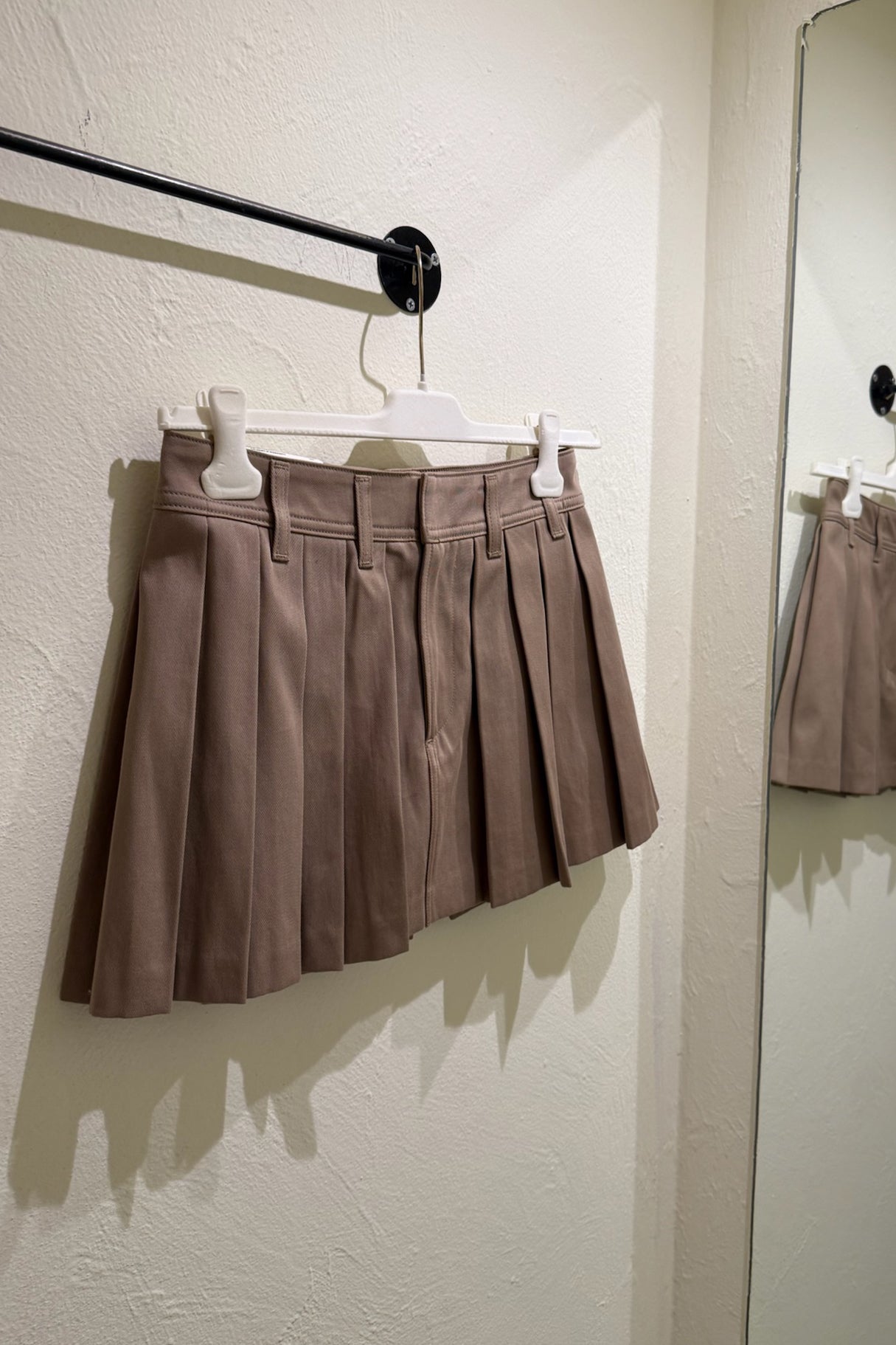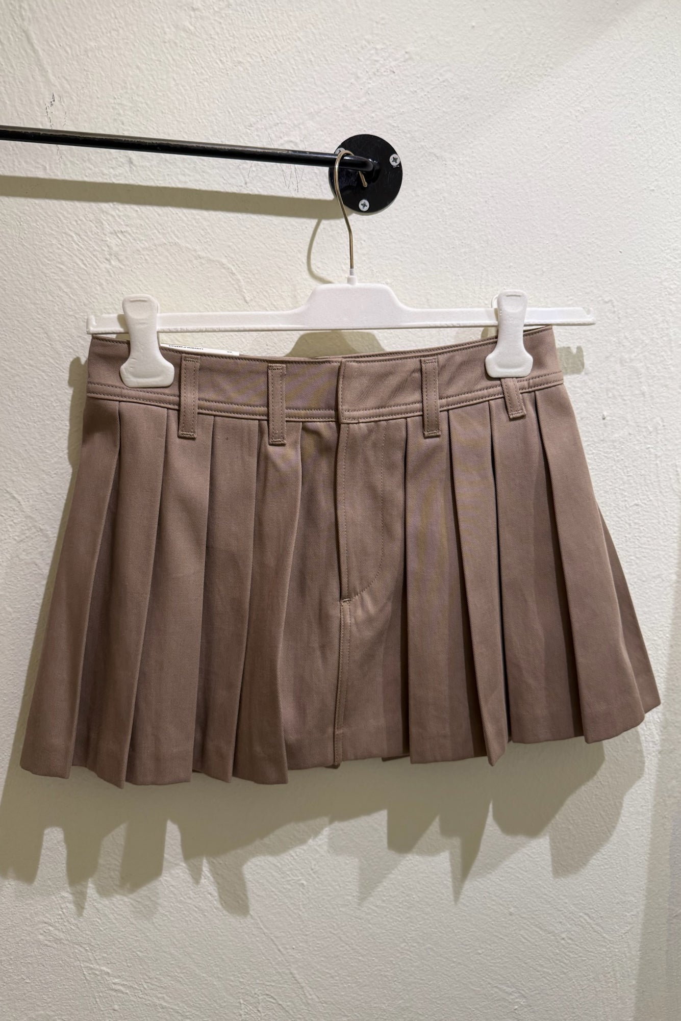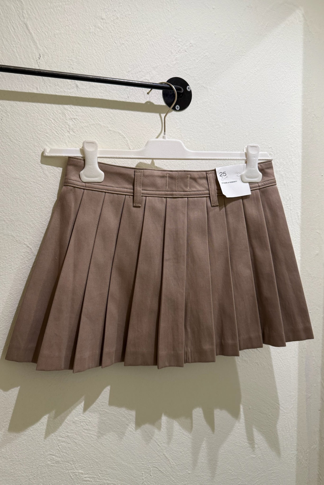 Una mini pulita dalle linee essenziali con un leggero volume, questa gonna plissettata è realizzata in twill di cotone lucido dalla mano morbida ma consistente.
