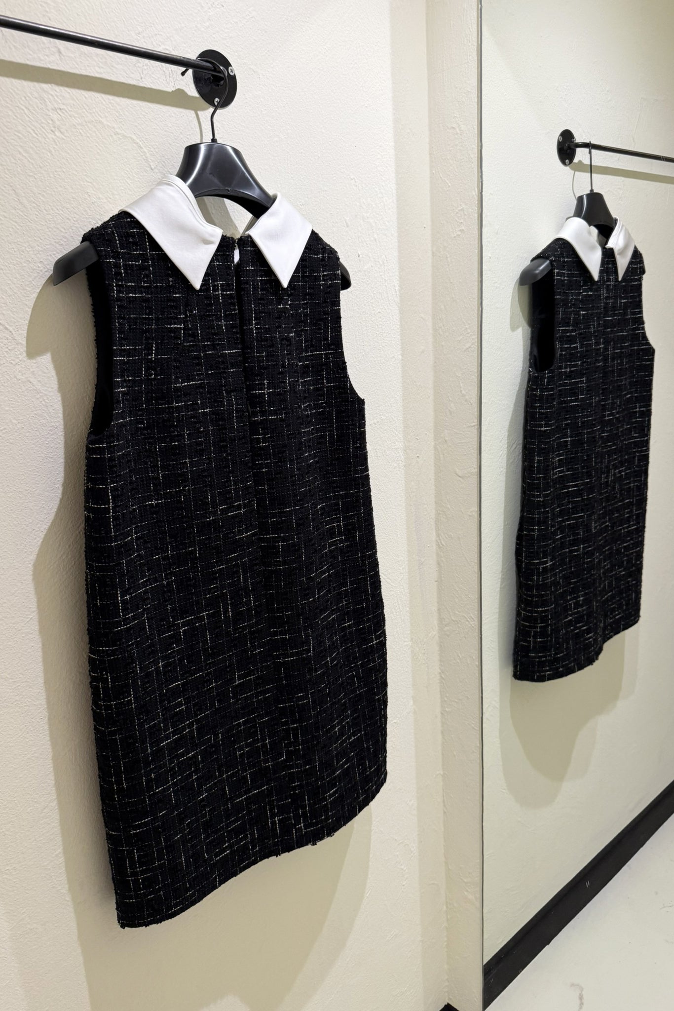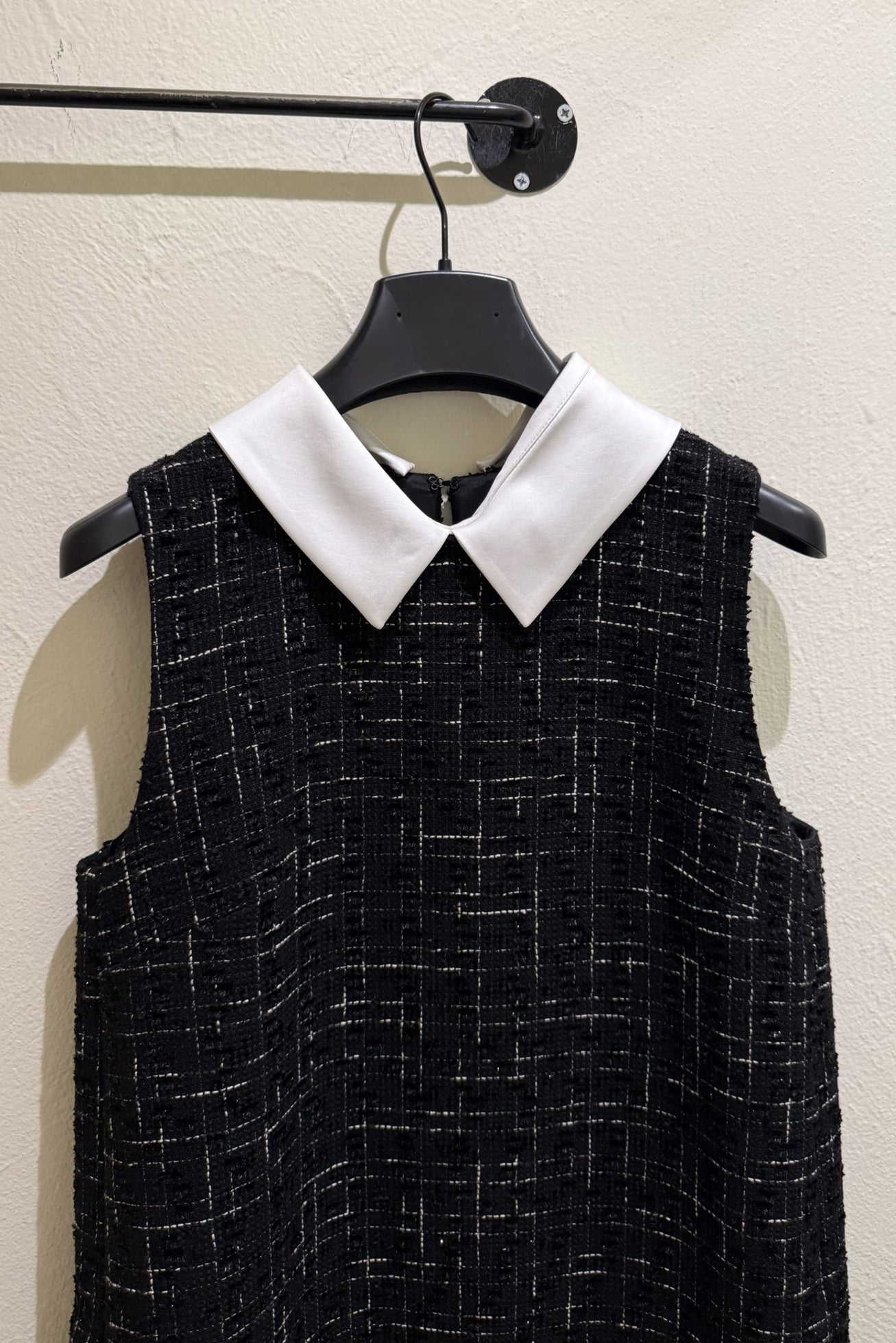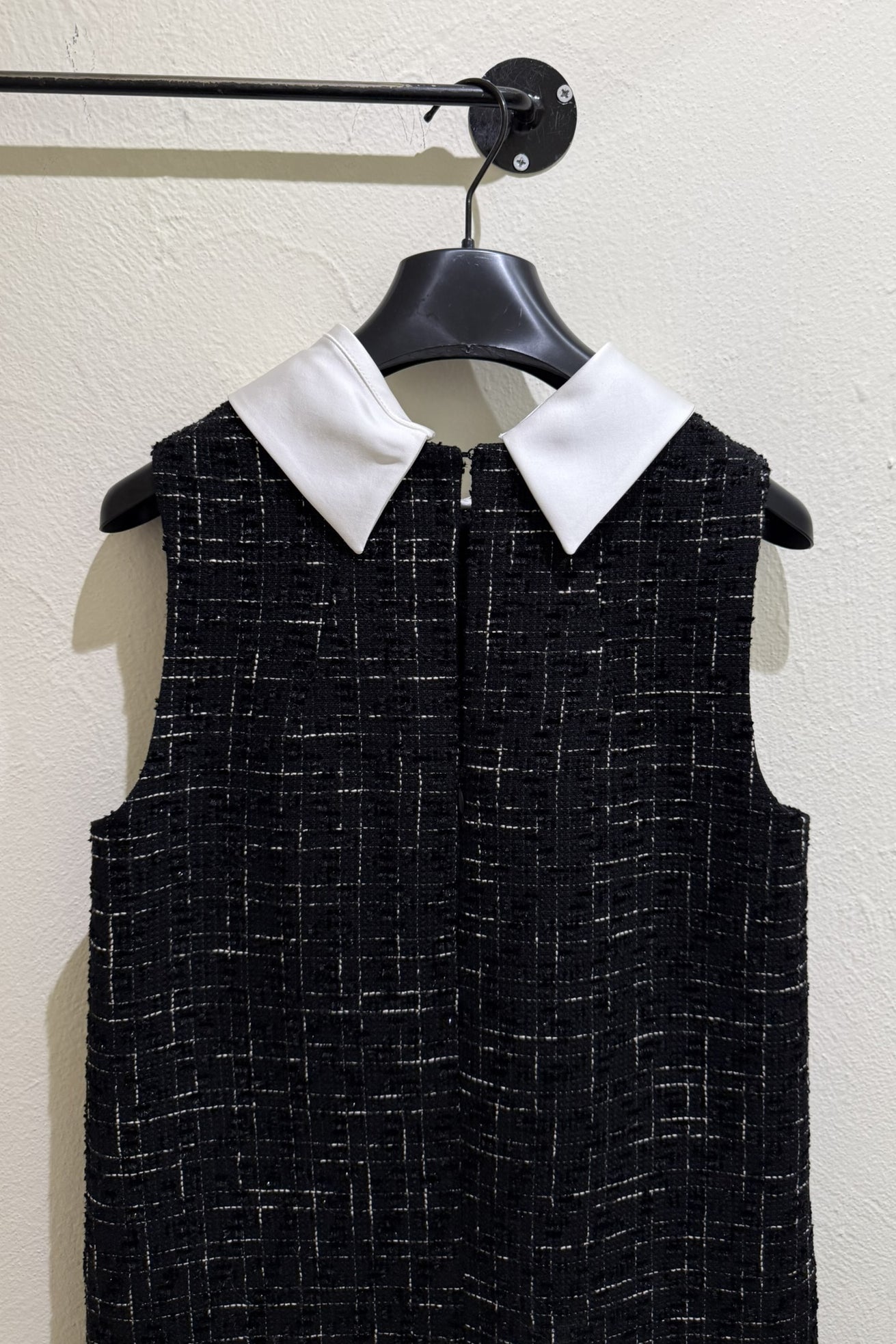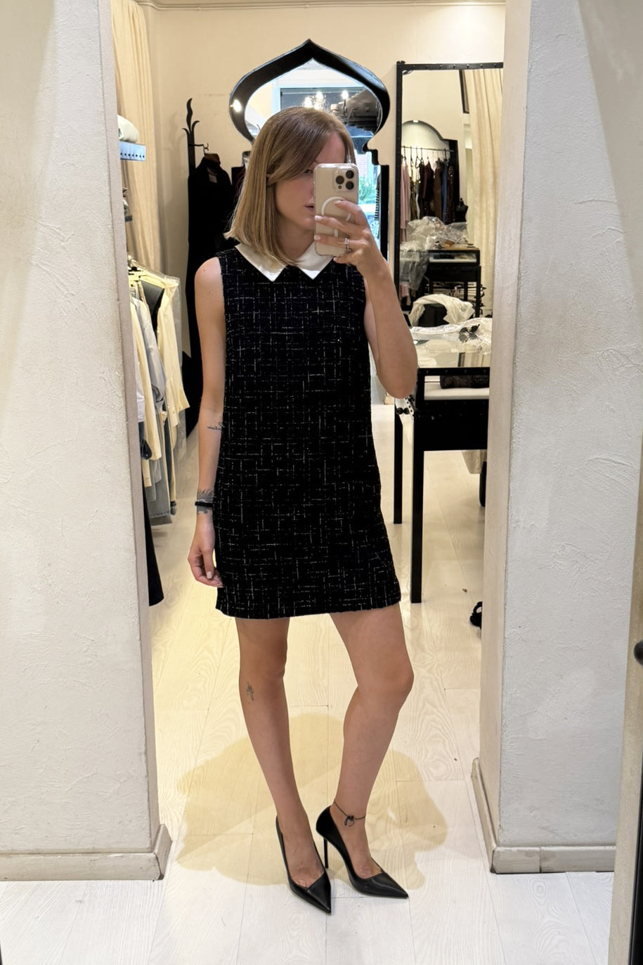 Abito in bouclé smanicato con colletto bianco